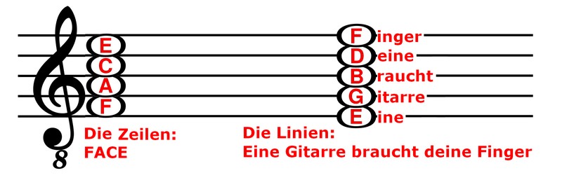 - Eselsbrücken um sich die Notenzeilen besser einprägen zu können