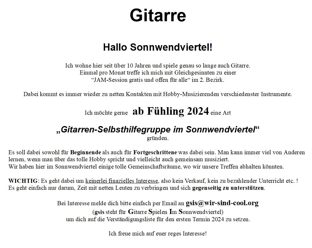 Gitarren Selbsthilfegruppe im Sonnwendviertel