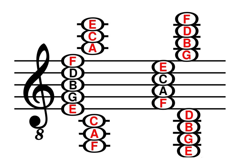 - Eselsbrücken um sich die Notenzeilen besser einprägen zu können