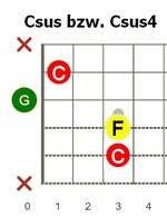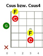 Ein Csus4 Akkord besteht somit ausden Tönen C F und G.